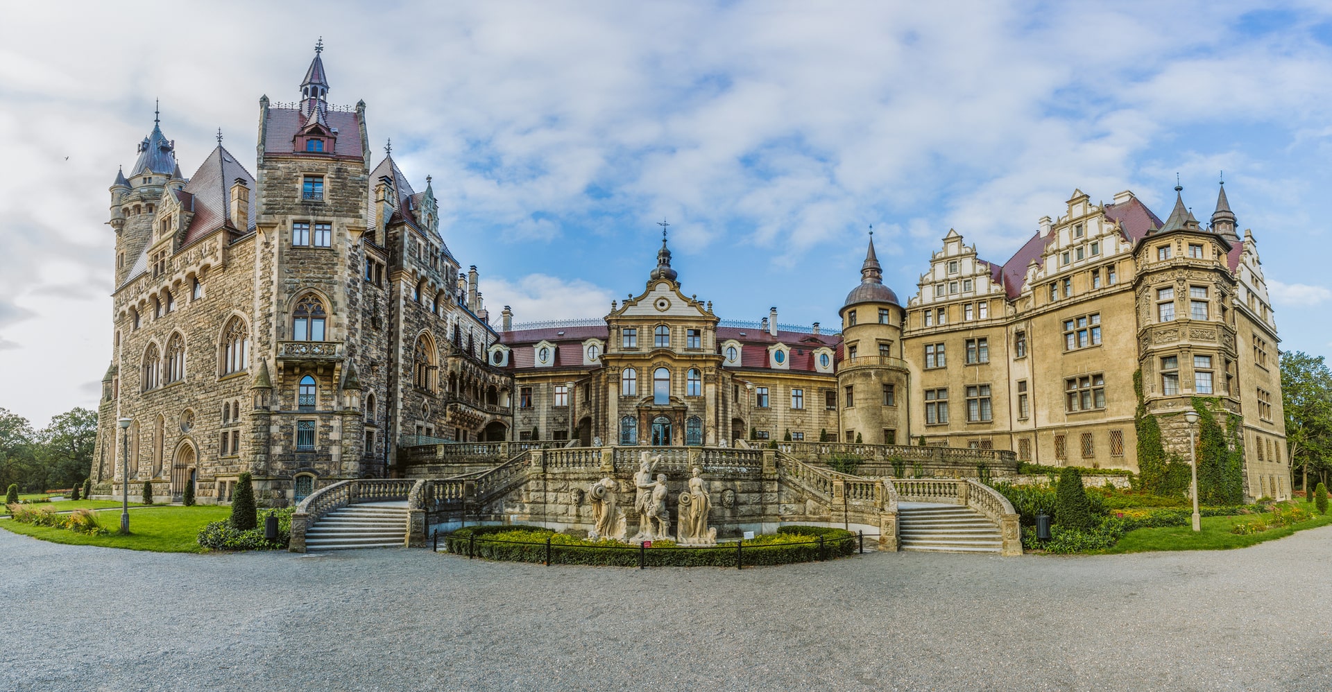 Zamek w Mosznej to prawdziwa wizytówka regionu — bajeczna architektura łącząca neogotyckie detale z elementami baroku i neorenesansu. Ten bajkowy kompleks zbudowano na przełomie XIX i XX wieku, posiada aż 99 wież i 365 komnat, co czyni go jednym z najbardziej rozpoznawalnych i romantycznych zamków w Polsce. Otoczony pięknym, rozległym parkiem, idealnie nadaje się na spacer, fotografowanie lub chwilę relaksu wśród zieleni.