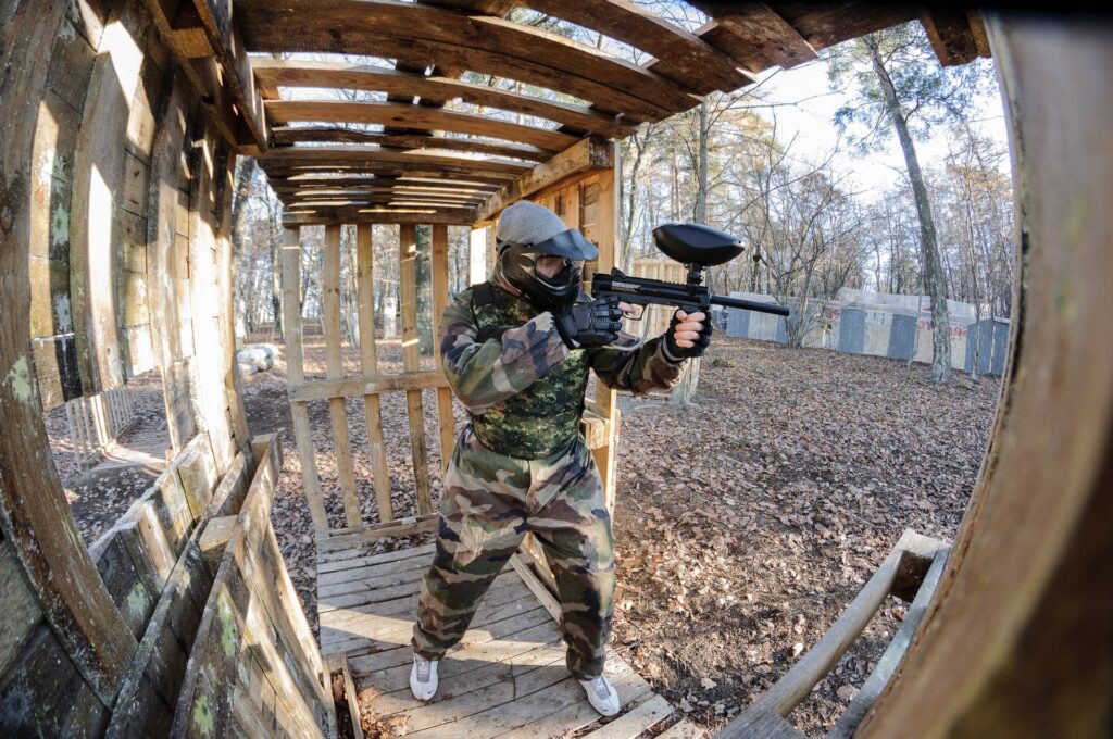 Leśne pole paintballowe z przeszkodami, bunkrami i scenariuszami gier – idealne dla rodzin, przyjaciół i grup integracyjnych szukających adrenaliny.